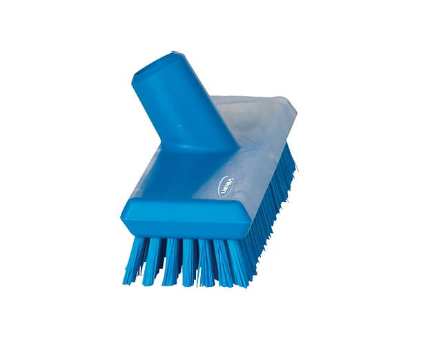 Szczotka Vikan 70413 z przepływem wody, przeznaczona jest do usuwania uporczywego, lepkiego brudu na małych powierzchniach, w szczególności w rzeźniach i zakładach przetwórstwa mięsnego. Szczotka posiada krótkie i bardzo twarde włosie.