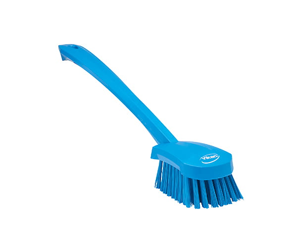Szczotka do zmywania z długim uchwytem Vikan 41863 doskonała do czyszczenia trudno dostępnych części urządzeń. Idealna również do mycia głębokich wiader, pojemników i zbiorników. Ma długi uchwyt i kątowe włosie, które poprawia skuteczność czyszczenia.