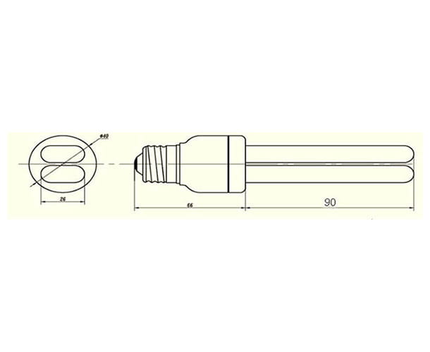 Energooszczędna żarówka bakteriobójcza model 220V15WE27 do sterylizatora: model 5520.01 i 5522.01 emitująca promienie UV o długości fal od 250 do 260 nm.